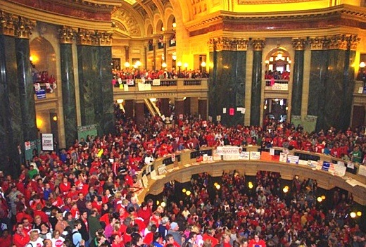 Anyway, Walker seems to have bitten off more than he can chew. The issue is not just how much state employees are going to get paid. It’s that he wants to take away their right to join a union. State employees are furious. The protests have been massive, and there is something very Egyptian about them.
