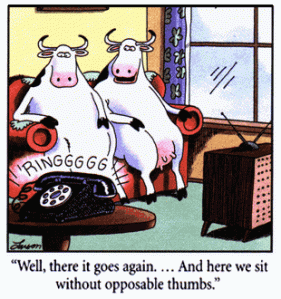 If the cows rose up, we’d still be fine. They still lack thumbs. Stupid cows!