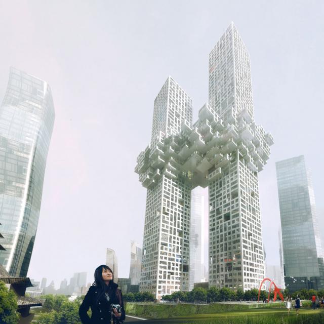 The two towers could also refer to a pair of buildings (proposed) in Seoul, South Korea, which have some over sensitive Americans bent out of shape because of their resemblance to the World Trade Center. Actually, because of a “cloud,” a multi-storey bridge between the two buildings, allowing for a lot of restaurants and such with really nice views and making it easy to get from one building to the other without going all the way back down to ground level. The cloud makes it resemble the World Trade Center as it was collapsing.