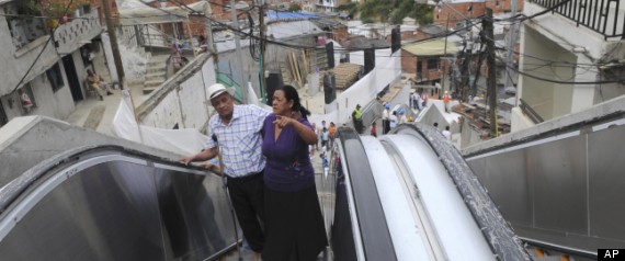 The residents of Comuna 13, one of Medellin, Colombia’s poorer neighborhoods, just got a big help up.  The neighborhood is on a steep hill.  It takes over half an hour to walk to the top.  Now they have the world’s longest outdoor escalator.