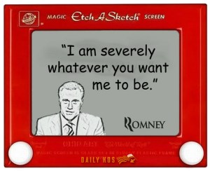 Eric Fehrnstrom, Romney’s top spokesperson, was being asked on CNN if he wasn’t worried that maybe the Mittster wasn’t being pushed too far to the right in the primaries and if this wouldn’t pose a threat in the general election, when he let fly with this little pearl of accidental honesty. “Well, I think you hit a reset button for the fall campaign,” he said. “Everything changes. It’s almost like an Etch a Sketch. You can kind of shake it up and we start all over again.”