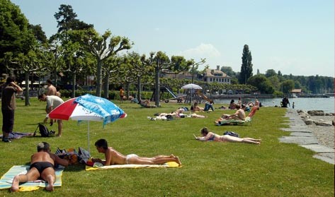 Came home, had lunch, eventually got out of the house about 3 o’clock, and paid 12 francs for parking. Went up the lake a bit to a beach where the water was much, much colder than at Lago di Garda but also clearer and quite beautiful. You could see right to the bottom, and Isabel had a great time collecting rocks and Sam got 7 skips on one stone- a personal best.