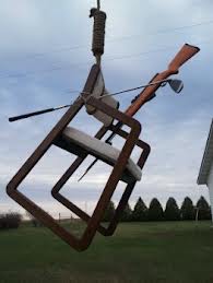 A case in point is Laurie Mulholland, from Rochester, Minnesota. Outside her home, hanging from a tree, there is a noose. Hanging from the noose, there is a chair. She give’s Eastwood credit for that, but it didn’t really need to be said. This is not the first incident of someone, following Eastwood’s speech, lynching a chair. It is one of the more imaginative ones. The chair has been run through with a bayonet, and there’s also a golf club in there for some reason.