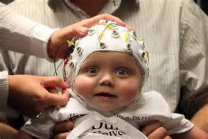 First is this story, about how they wired babies’ heads (the more docile babies. Lots of babies were kept out of the experiment for being “too squirmy.” I think that should be accounted for when analyzing the results) and showed them photographs to see if they were responding to the outside world, i.e. if they had awareness of themselves as something distinct from the rest of the universe, and they found that 5 month old babies are pretty well conscious.