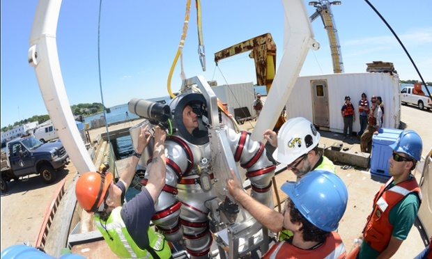 This development, though, is amazing, and has on-land implications. It’s a diving suit, it looks a bit like a space suit, but it allows the wearer to go down to about 350 meters, have total mobility (plus some pretty cool prosthetic attachments for collecting and analyzing samples), and stay down for up to 50 hours, although nobody’s going to stay down that long because people need to sleep, not to mention eat and drink and pee and poop. I don’t know, maybe they’ve worked those out as well. It also has jets to help you get around quicker.