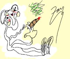 my dog, Grover, a shaggy, lovable, little ball of white fur. I objected quite loudly, and went on a bit of a rant, a totally inappropriate, or at least out of character, lecture about how animals aren’t people and it was borderline animal abuse to try and get a dog high because they didn’t have the whole social paradigm to fully appreciate this drug, they weren’t seeking it, they’d probably just think they were sick or something, and my friend was looking very repentant and embarrassed but then, when he passed the joint on to the next person, Grover just moved on down the line and sat in front of the joint-holder, in the classic canine big-eyed begging posture.Everybody burst out laughing and my point was about as firmly disproven as any point ever was. Animals absolutely love marijuana. If you feed it to cows, they will give more milk.
