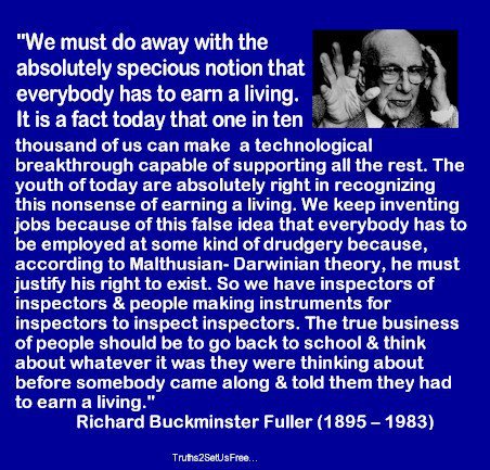 This (pictured at right) popped up on my facebook page the other day and I’ve been meaning to write about it but got bogged down in politics. So, I’m writing about it now. Not enough people read Buckminster Fuller any more.